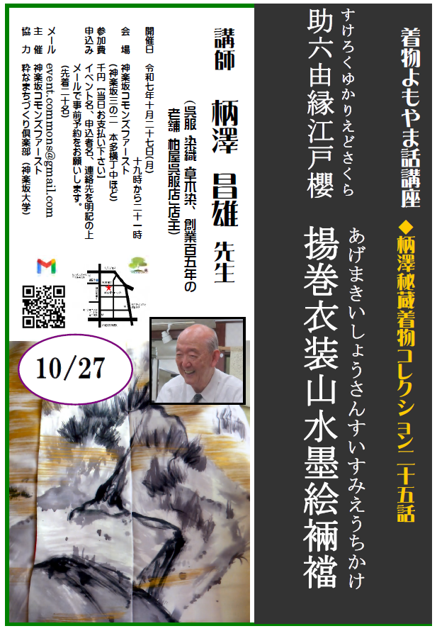 【お知らせ】神楽坂コモンズファースト講座  着物・染め物よもやま話「柄澤昌雄コレクション第25話」(2025/10/27)