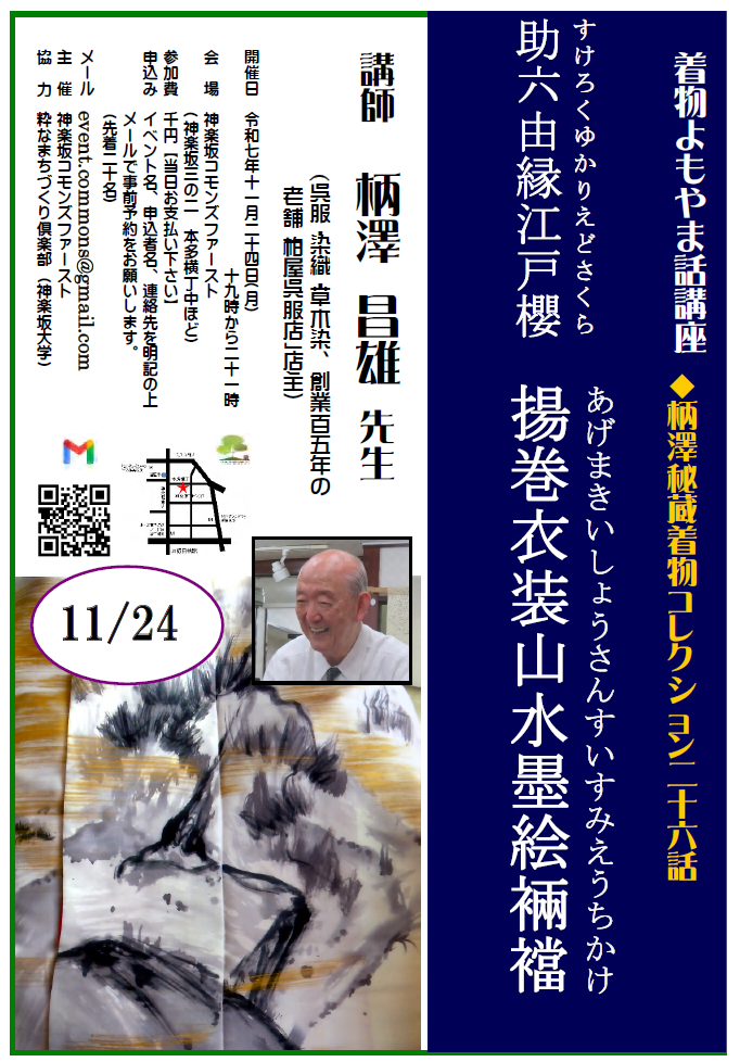 【お知らせ】神楽坂コモンズファースト講座  着物・染め物よもやま話「柄澤昌雄コレクション第26話」(2025/11/24)