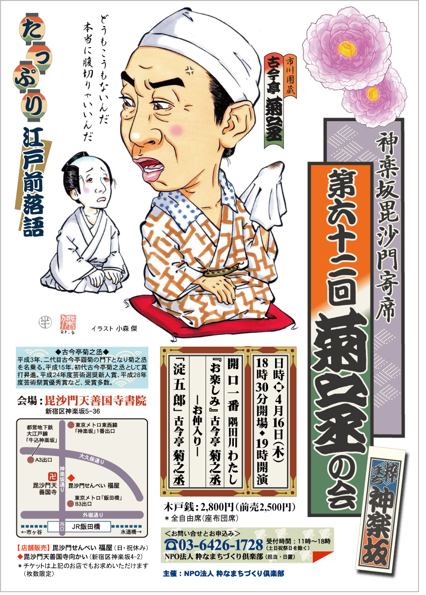 | 2026年4月16日 | (木) | 18:30開場 19:00開演 | レポート | 神楽坂毘沙門寄席 「第62回菊之丞の会」 レポート(2026/4/16)![]() | 神楽坂 毘沙門寄席 |