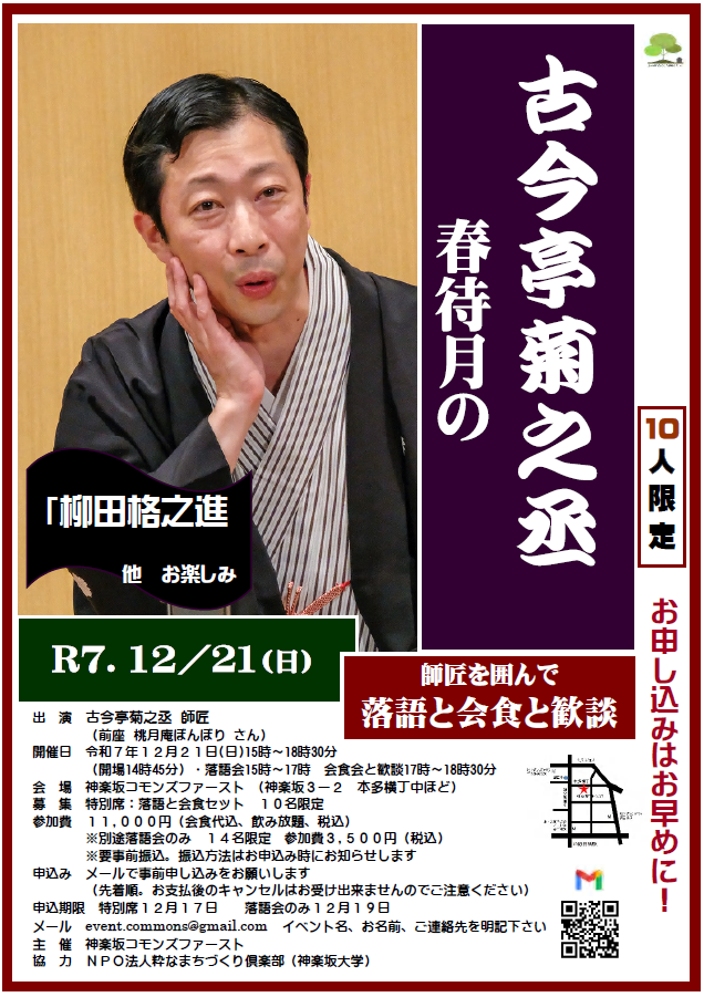 2025年12月21日(日)15:00~18:30募集中 【神楽坂小紋図亭】 古今亭菊之丞 神楽坂 春待月の特別席(2025/12/21)